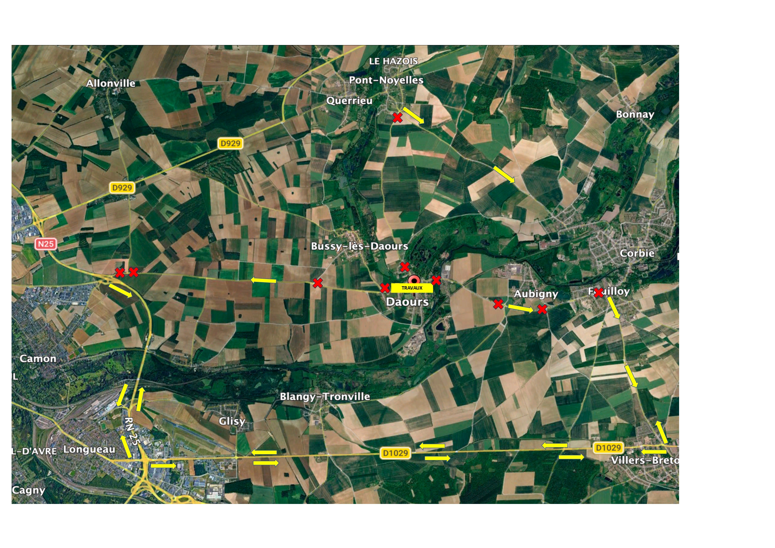 Nous vous informons que l’entreprise ADDUCTEAM interviendra prochainement sur la commune de Daours, dans le cadre de travaux situés sur la route d’Amiens. À ce titre, des déviations seront mises en place à compter du mardi 7 avril 2026, pour une durée prévisionnelle de six semaines.